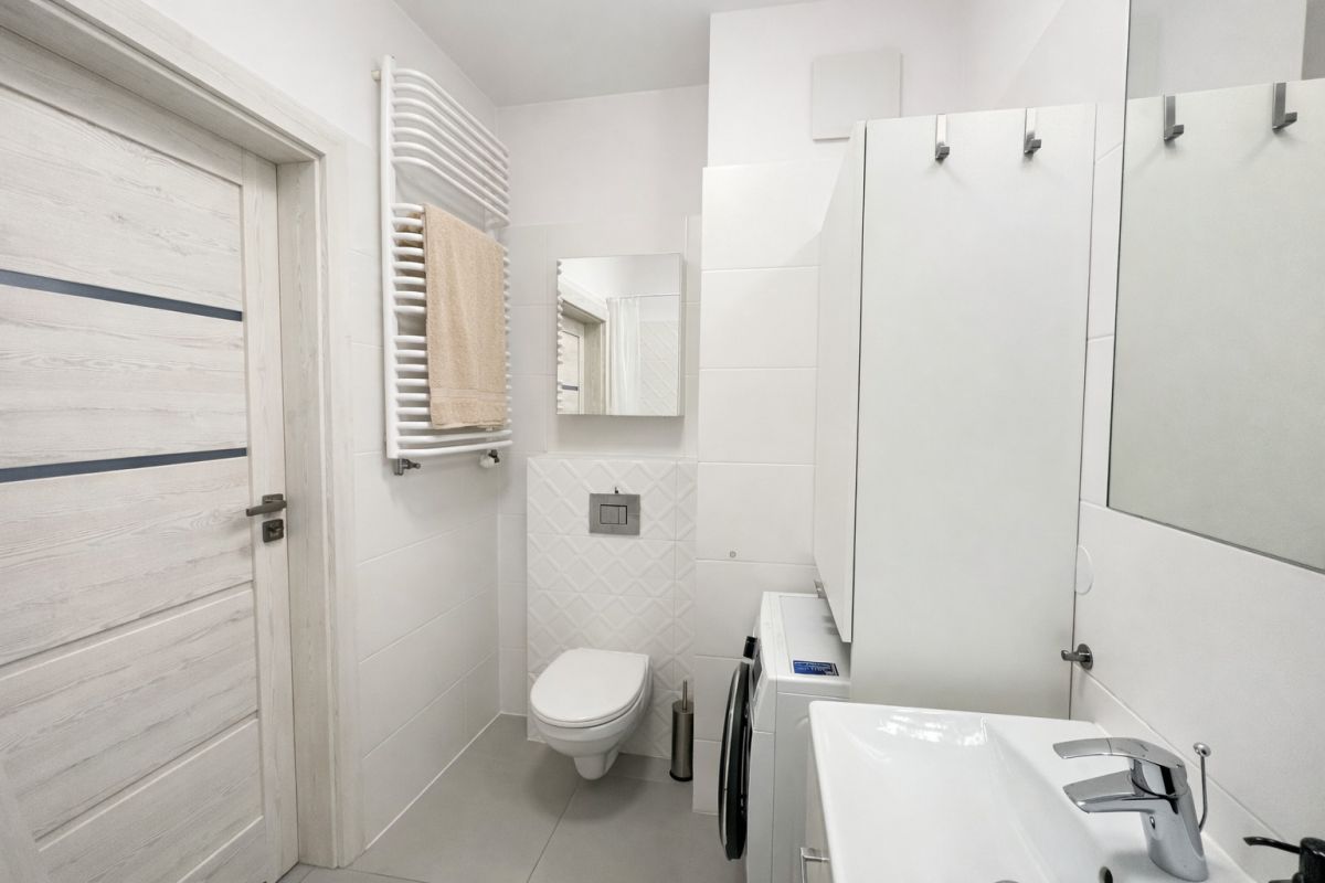 Mieszkanie łączy nowoczesne budownictwo, świetną lokalizację oraz gotowość do zamieszkania — jedną z najbardziej poszukiwanych konfiguracji na warszawskim rynku nieruchomości.