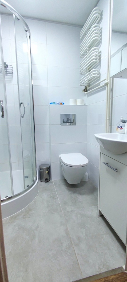 - Świeżo wyremontowana łazienka z kabiną prysznicową