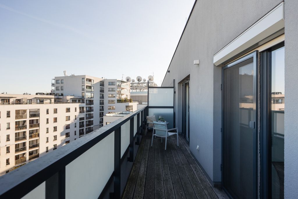Dwupoziomowy apartament z tarasem Najwyższe piętro Minimalizm i przestrzeń Stegny, Mokotów