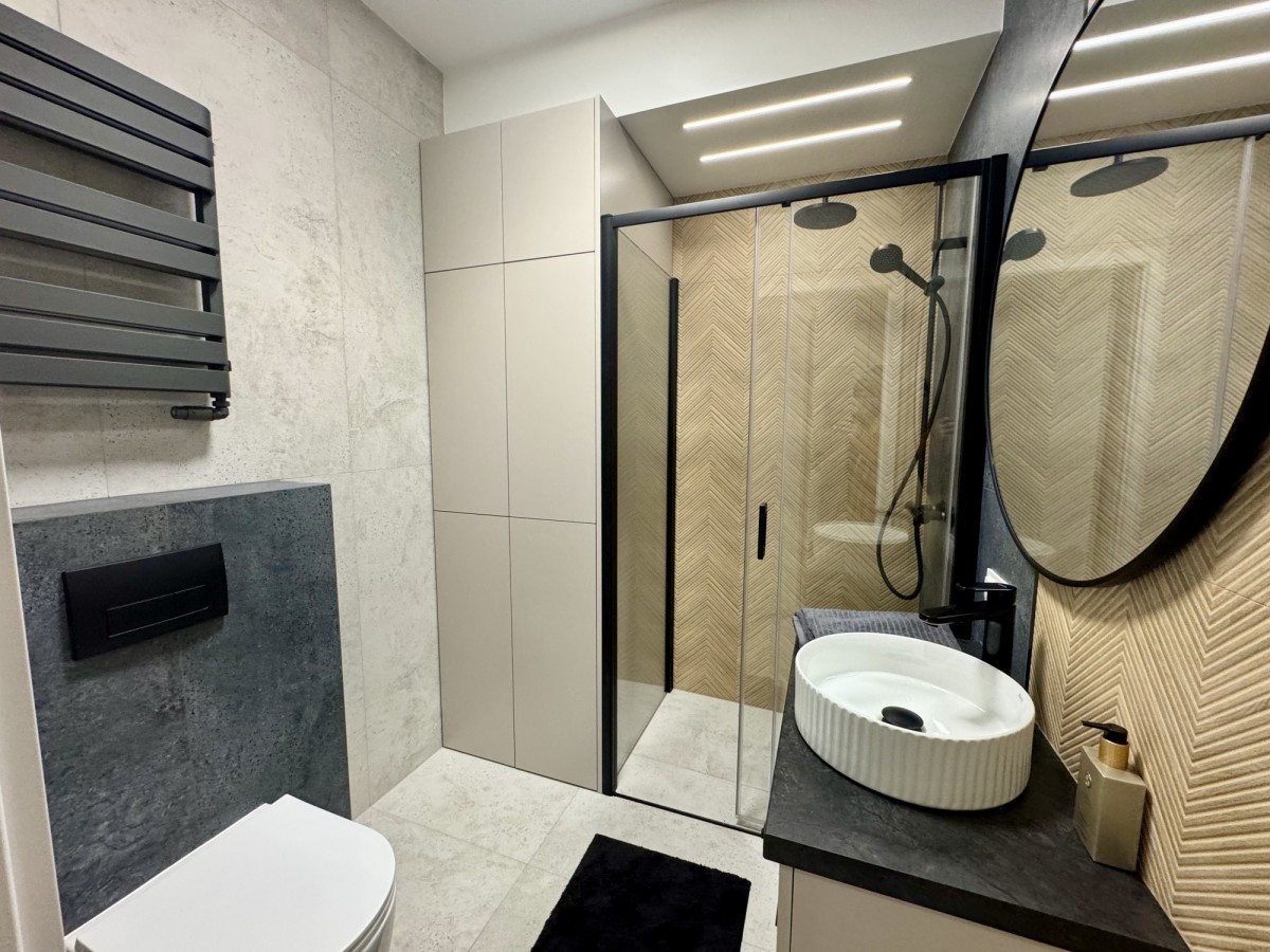 To nowe mieszkanie, wykończone i urządzone od podstaw, jest doskonałym przykładem perfekcyjnie wykorzystanej przestrzeni - każdy metr został zaprojektowany z myślą o maksymalnej funkcjonalności, komforcie i estetyce. Pomimo kompaktowego metrażu wnętrze oferuje wszystko, czego potrzeba do wygodnego życia, bez kompromisów.