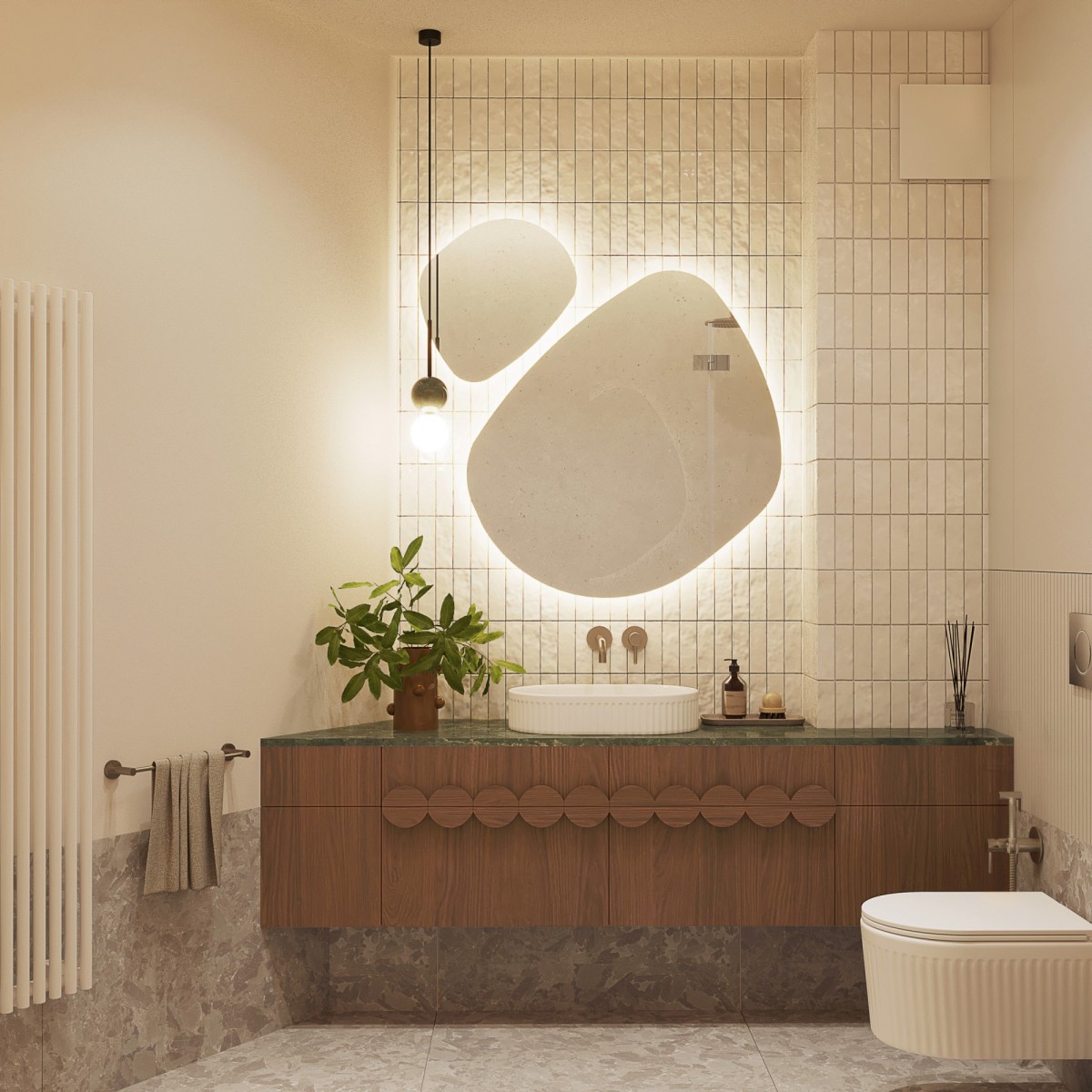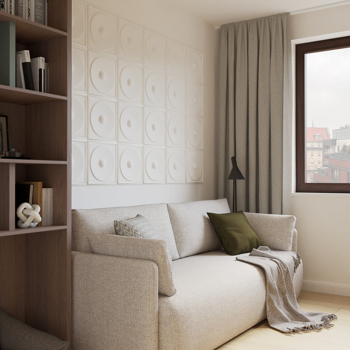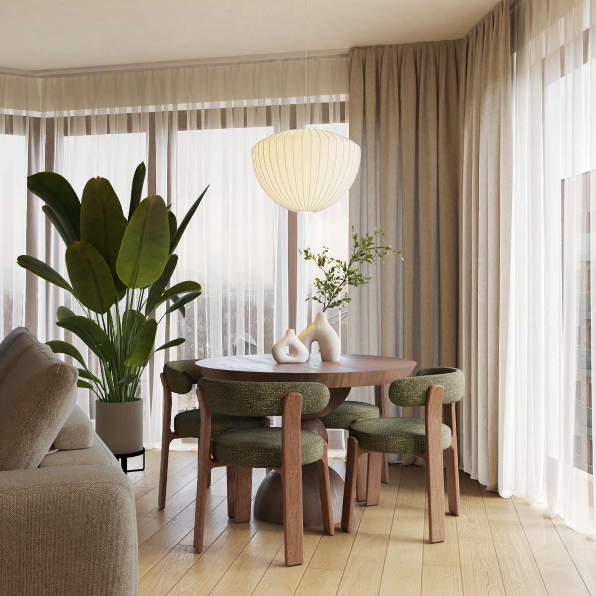 - Możliwość indywidualnego wykończenia - istnieje możliwość skorzystania z projektu aranżacji wnętrz, przygotowanego przez renomowaną pracownię architektoniczną Mikołajska Studio, co znacznie ułatwi proces urządzenia mieszkania.