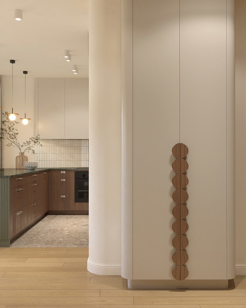- Światło i przestrzeń - głównym atutem apartamentu są duże okna, które wypełniają wnętrze naturalnym światłem i sprawiają, że przestrzeń jest jasna i przyjemna o każdej porze dnia.