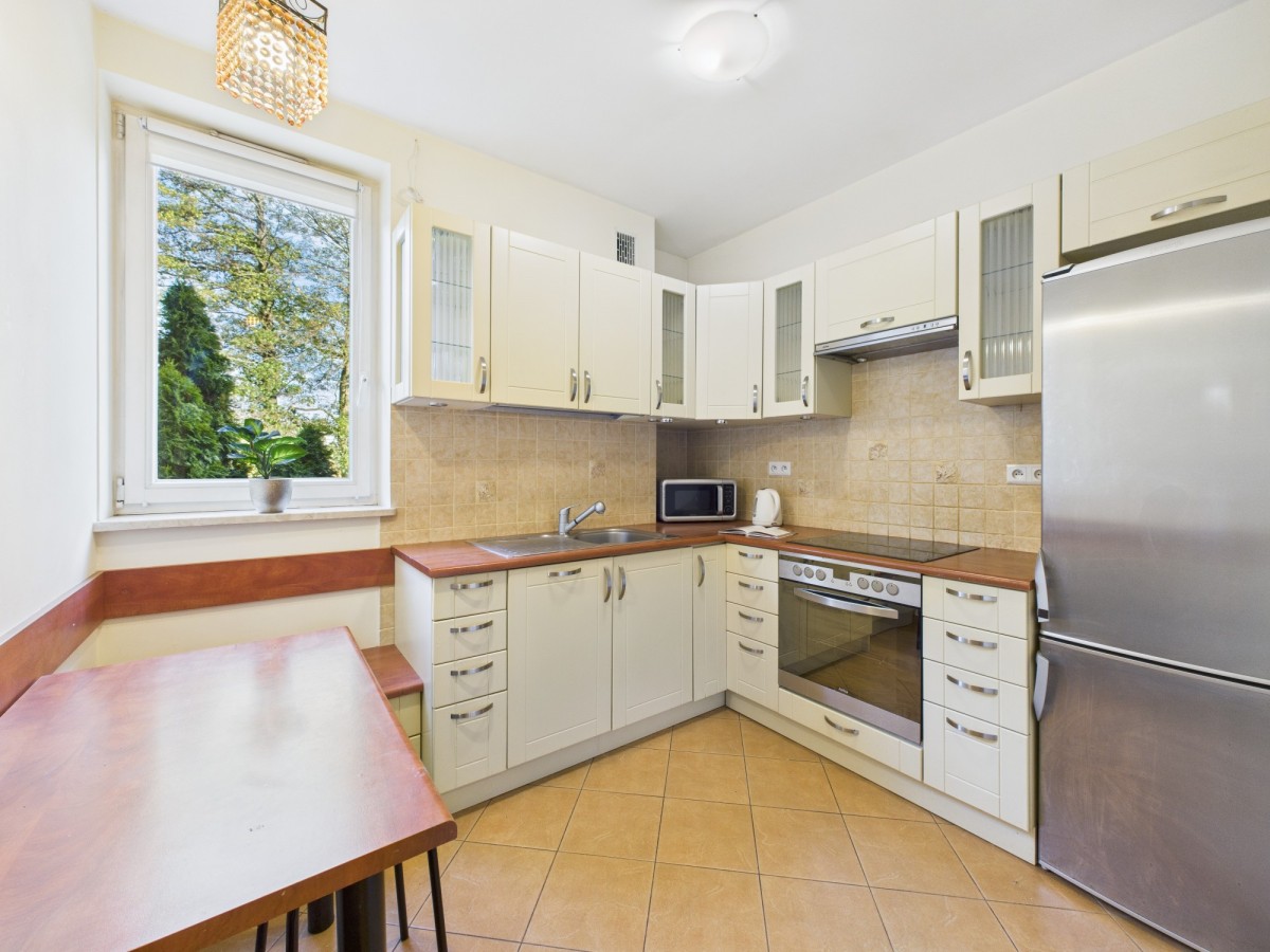 - oddzielnej, widnej, w pełni wyposażonej kuchni m.in. ze zmywarką i kuchenką mikrofalową,