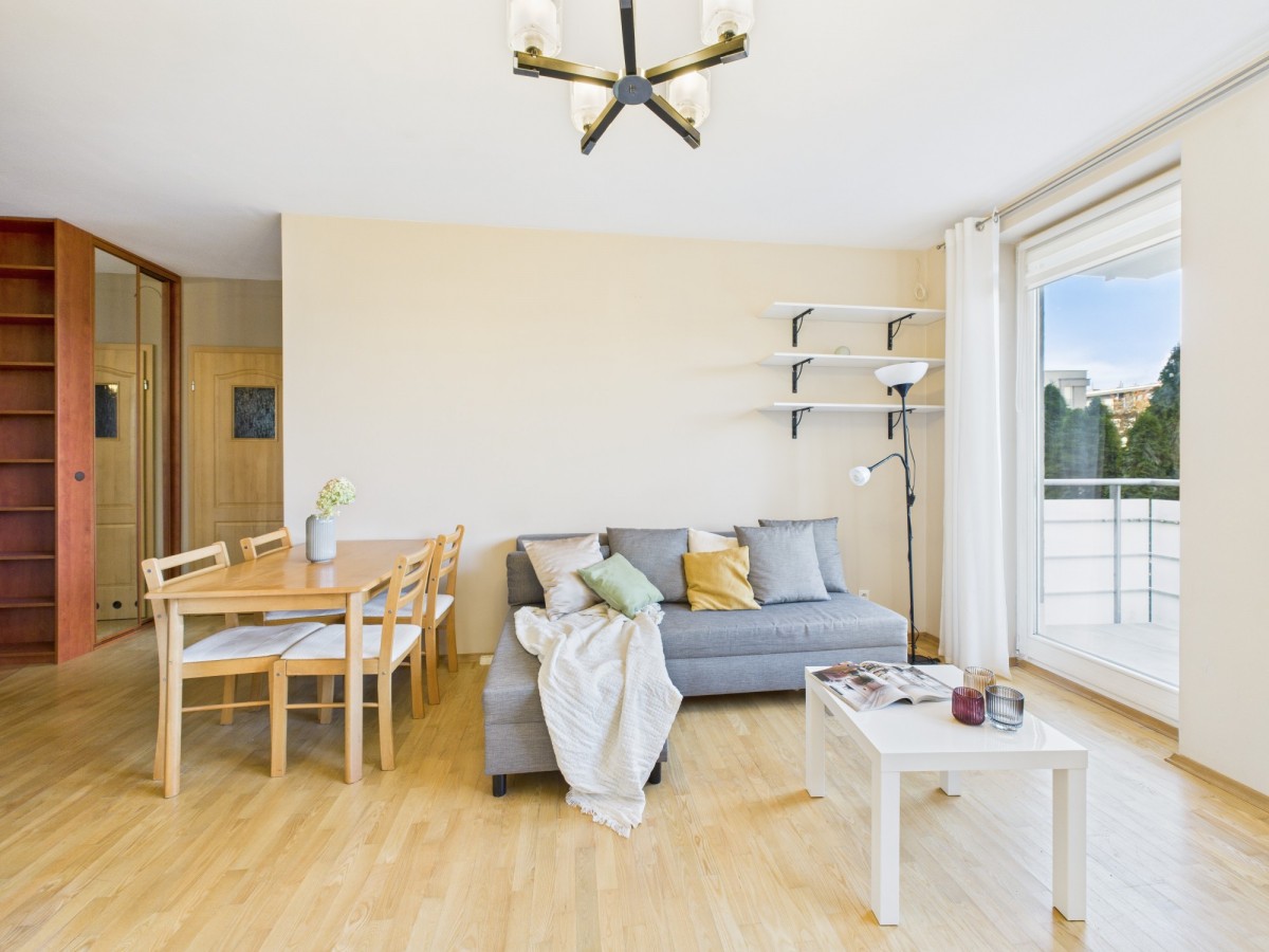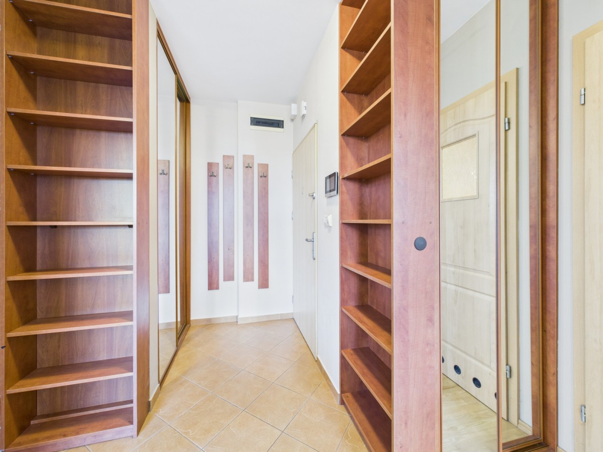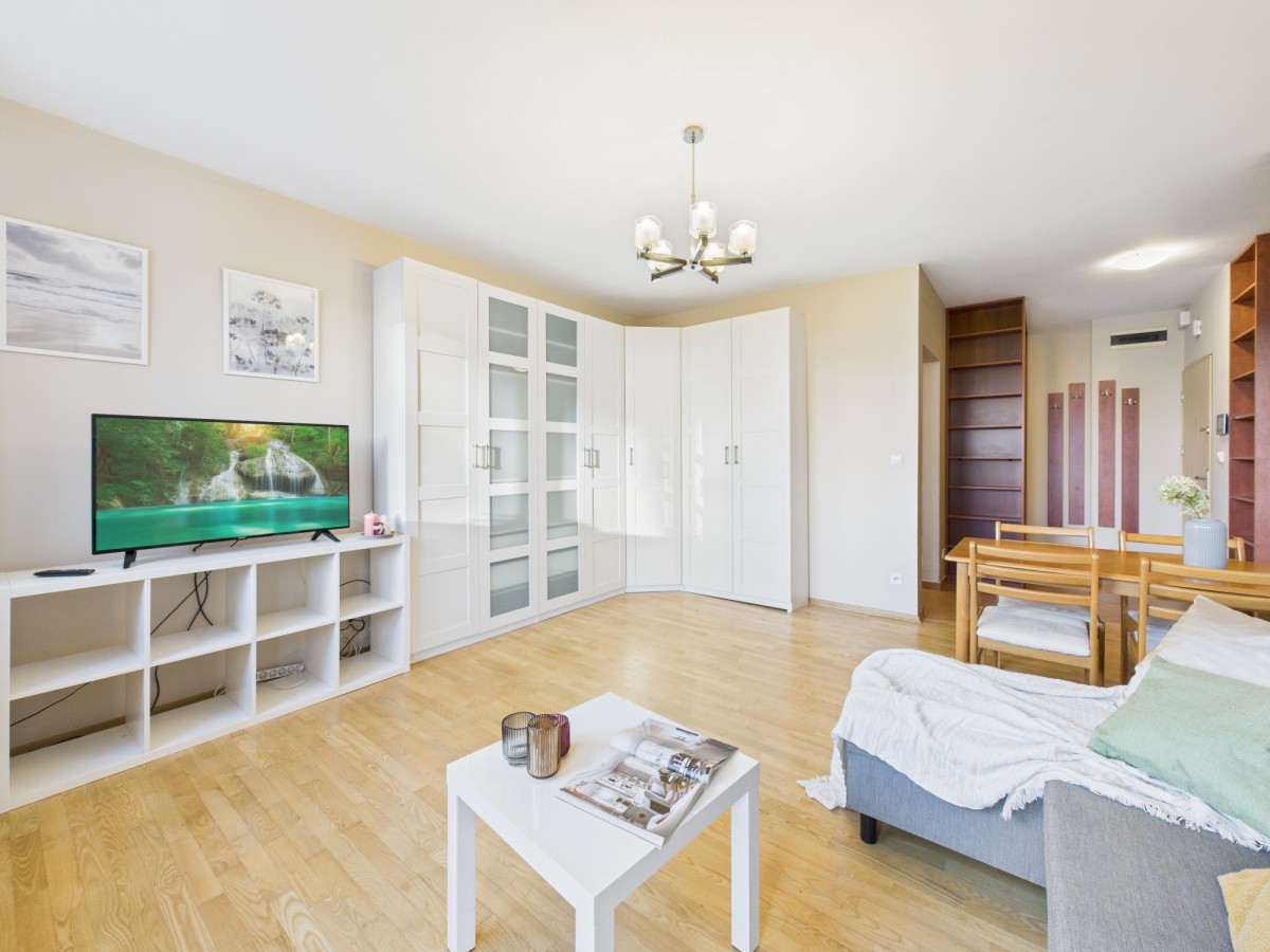 Do wynajęcia atrakcyjne, ciche mieszkanie 2 pokojowe z oddzielną widną kuchnią i miejscem postojowym w garażu podziemnym na zamkniętym osiedlu na warszawskiej Białołęce w okolicy M1, ul. Głębocka.