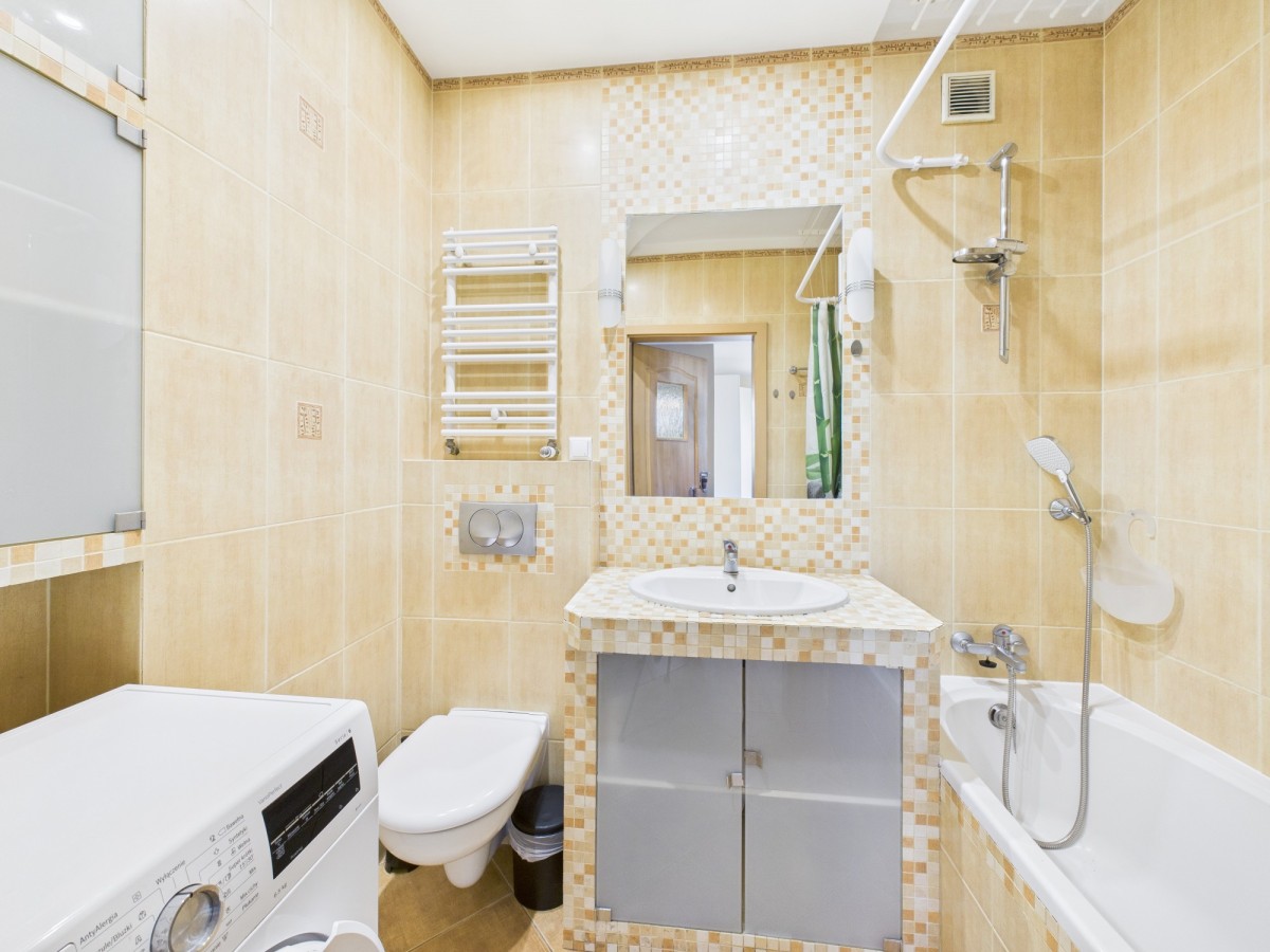 - łazienki z wanną i pralką.