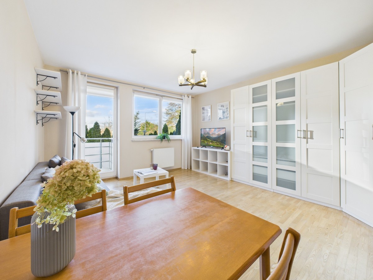 Ustawne, w pełni wyposażone mieszkanie o powierzchni 50,26 m2 i składa się z:
