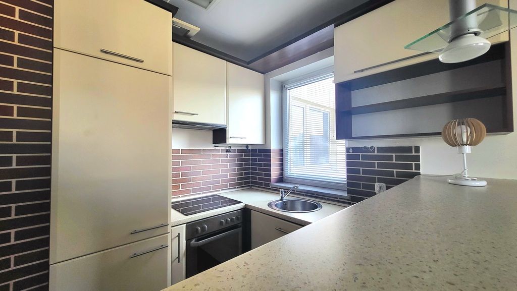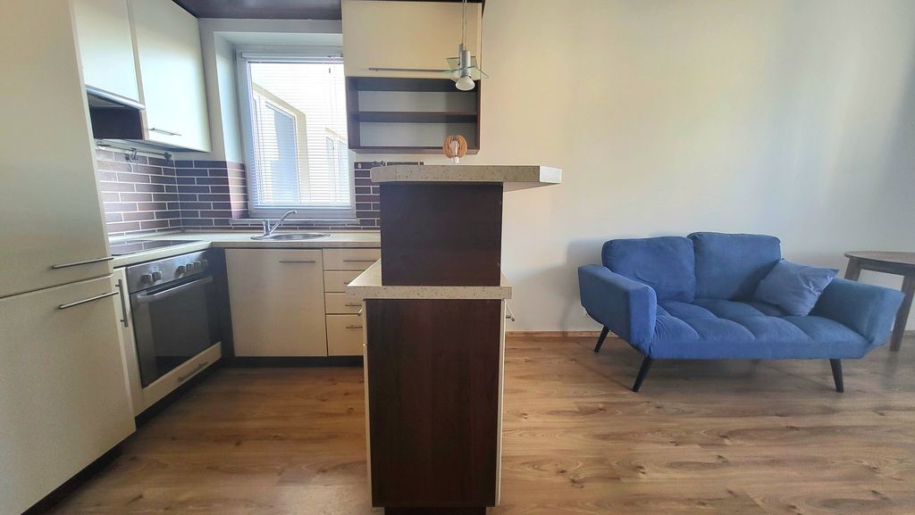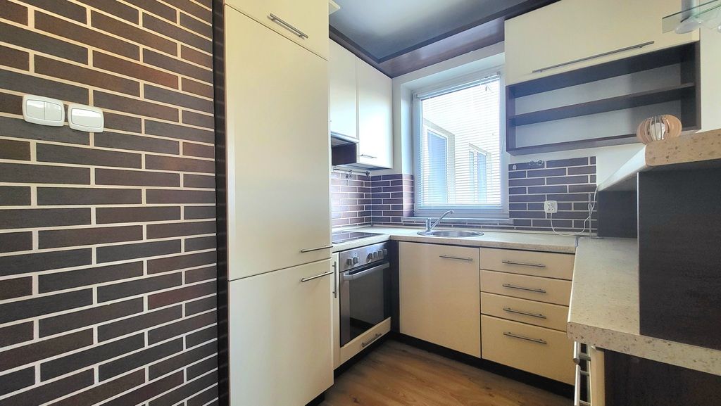 aneksem kuchennym — jasna, wygodna przestrzeń dzienna z wyposażeniem kuchennym (piekarnik, płyta, lodówka),