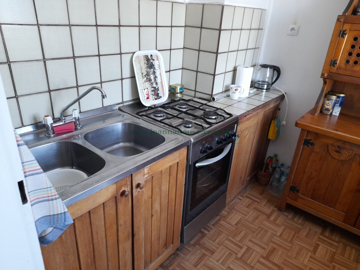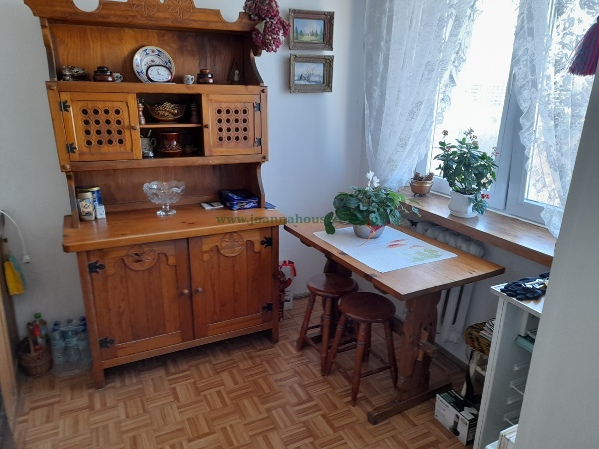 Kuchnia oddzielna z oknem wyposażona w sprzęt gospodarstwa domowego (talerze, garnki, sztućce). Do kuchni wchodzi się przez pokój.