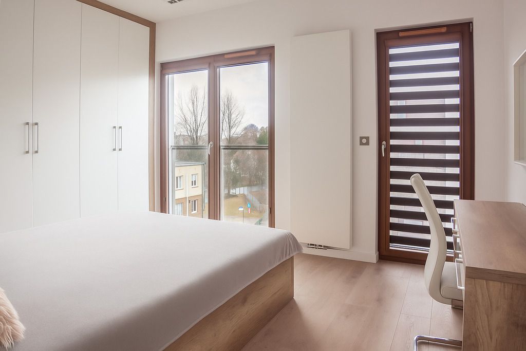 A cozy, gated community located near Szczęśliwicki Park. The apartment's windows face the quiet, interior side.