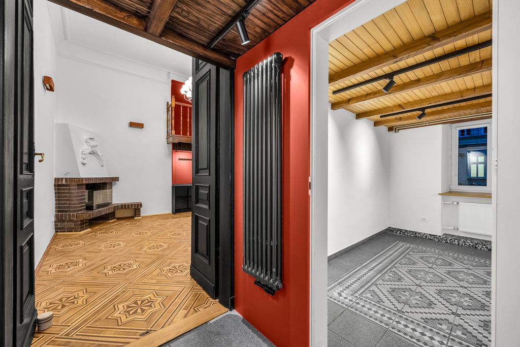 The building itself houses dental clinics, legal offices, parliamentary bureaus and service-oriented businesses — highlighting the versatile character of this location. The townhouse is equipped with an intercom and monitoring system, ensuring comfort and safety.