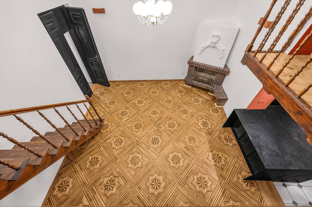 - Reprezentacyjny salon 34 m² z kominkiem, oferujący przestrzeń zarówno do spotkań, jak i codziennego wypoczynku.