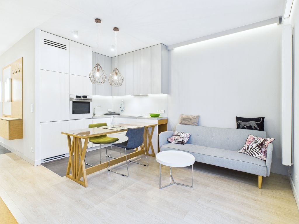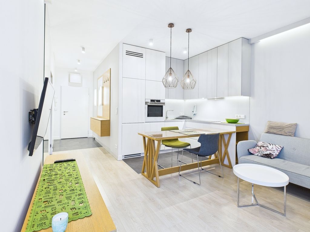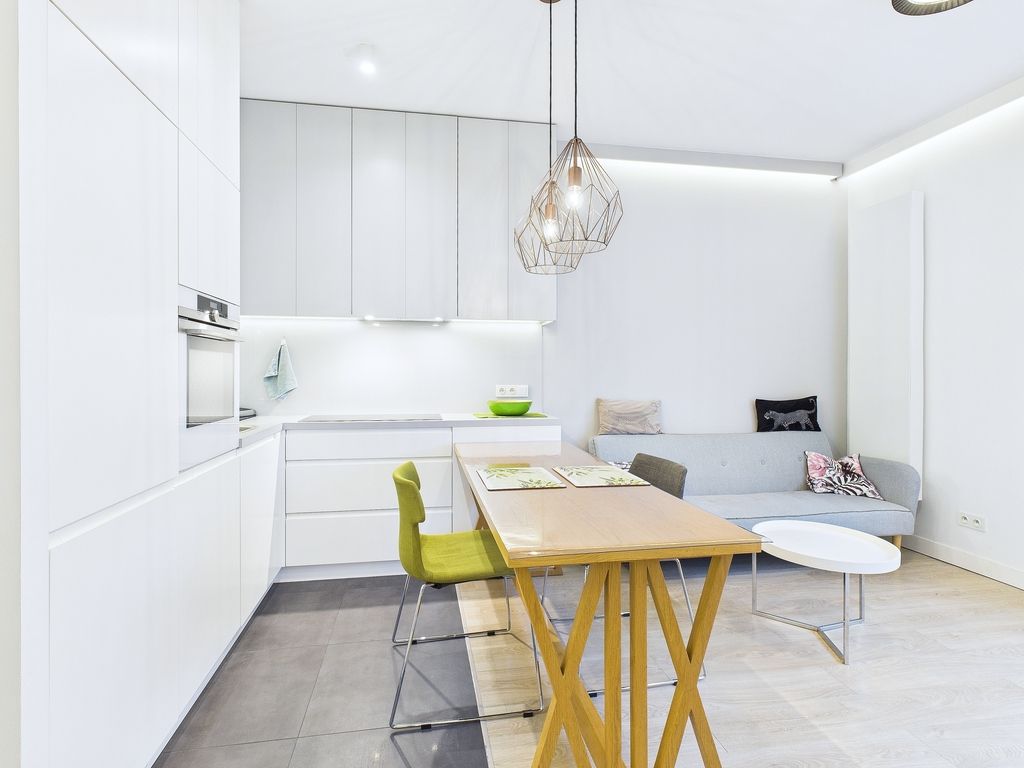 Wyposażenie: - pełny zestaw wysokiej klasy AGD: zmywarka, piekarnik, lodówka, płyta indukcyjna, pralka,