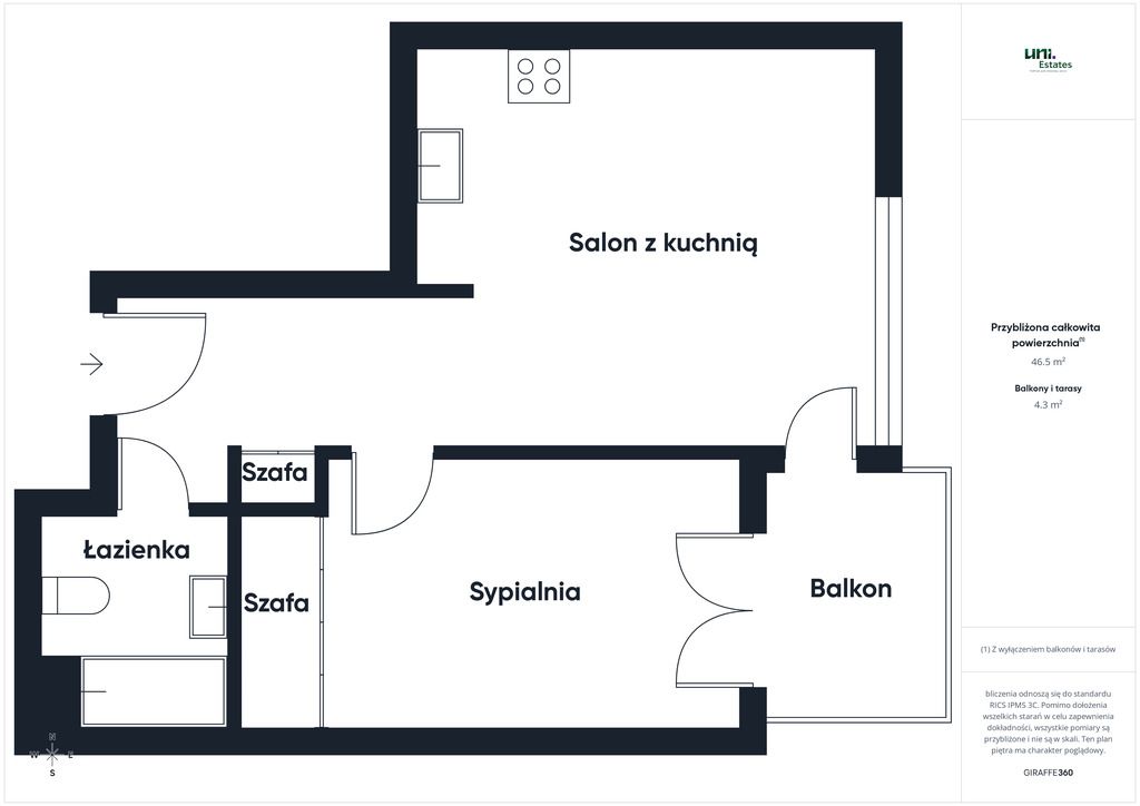 Układ pomieszczeń: - salon z aneksem kuchennym oraz wyjściem na balkon,