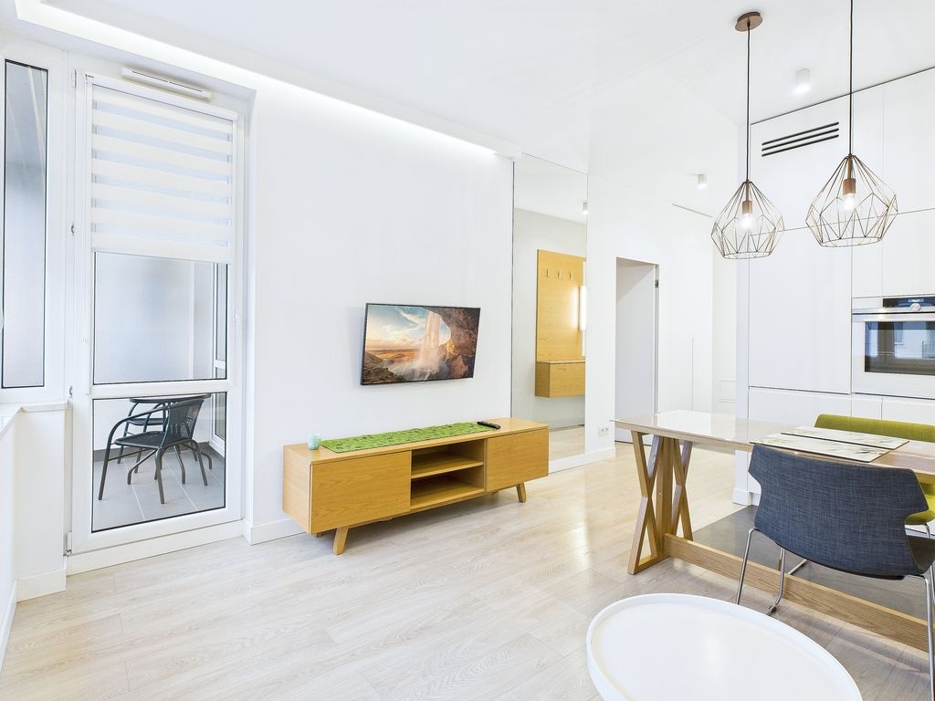 2-room apartment with an area of 46.5 m² is located on the 4th floor of an apartment building on Kłobucka Street, in the prestigious Central Park Ursynów development. The apartment has been finished to a high standard, with attention to detail, and is fully move-in ready.