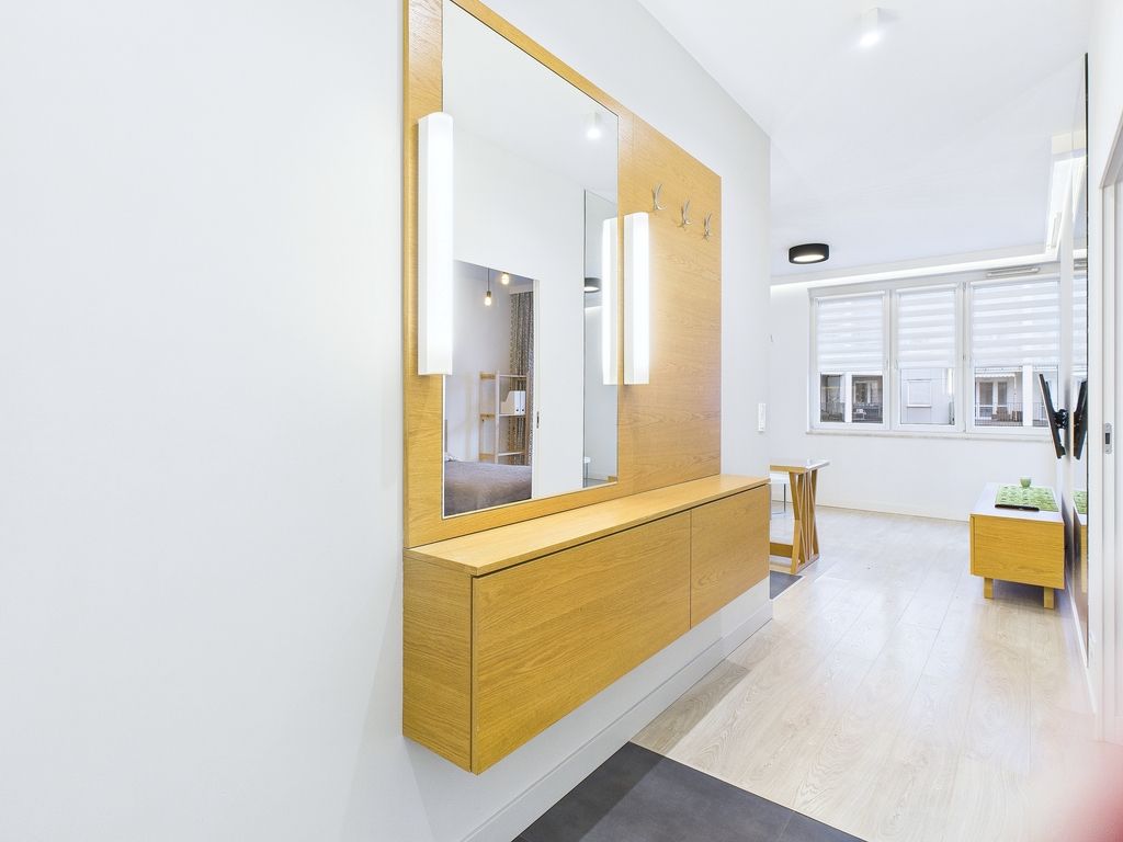 - built-in furniture, including large wardrobes in the hall and bedroom,