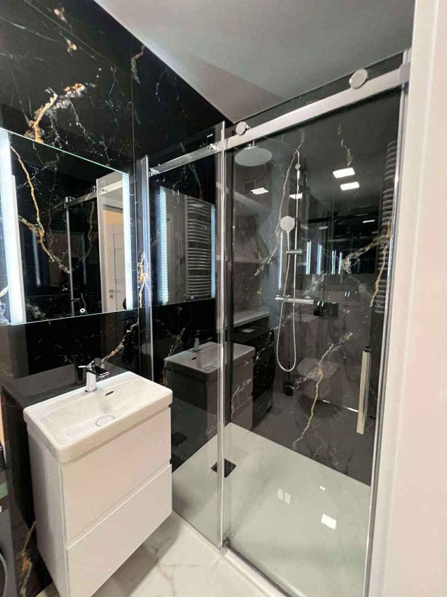 • Łazienka z prysznicem oraz pomieszczeniem gospodarczym