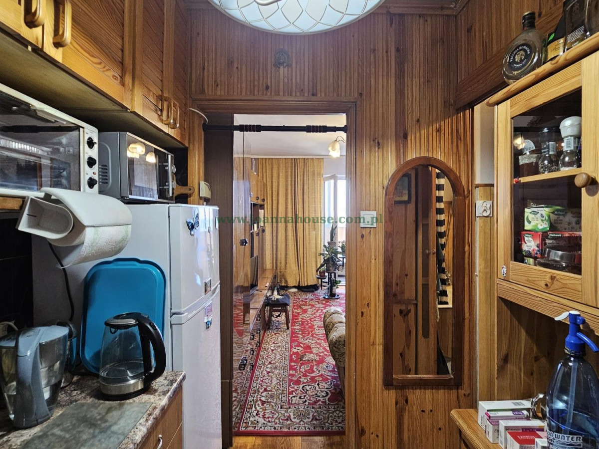 Kawalerka - pokój z zabudowanym balkonem, kuchnia w przedpokoju, łazienka z wanną.
