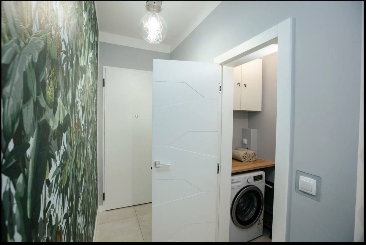 - Pomieszczenia gospodarczego z pralką i miejscem na przechowywanie rzeczy.