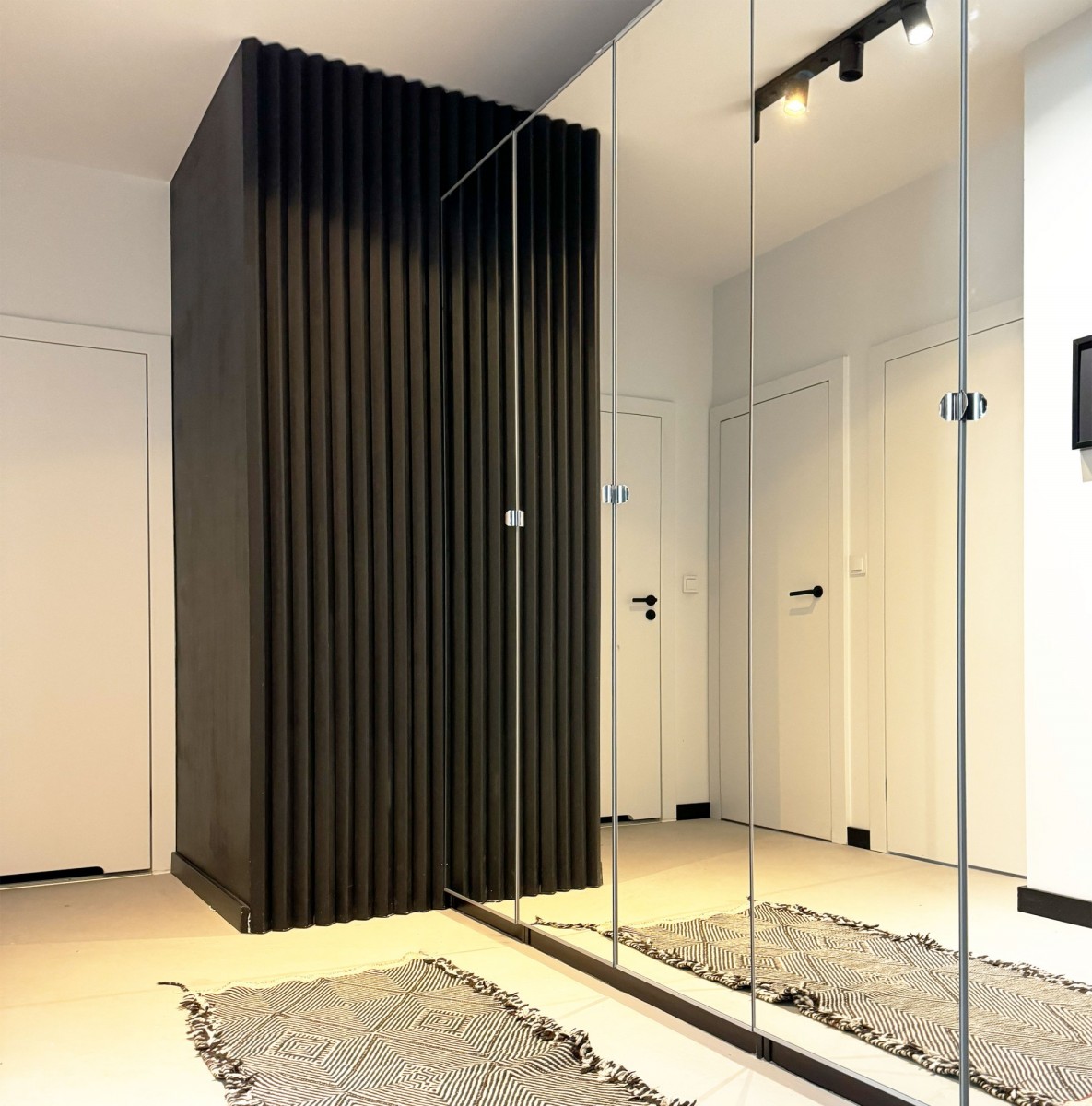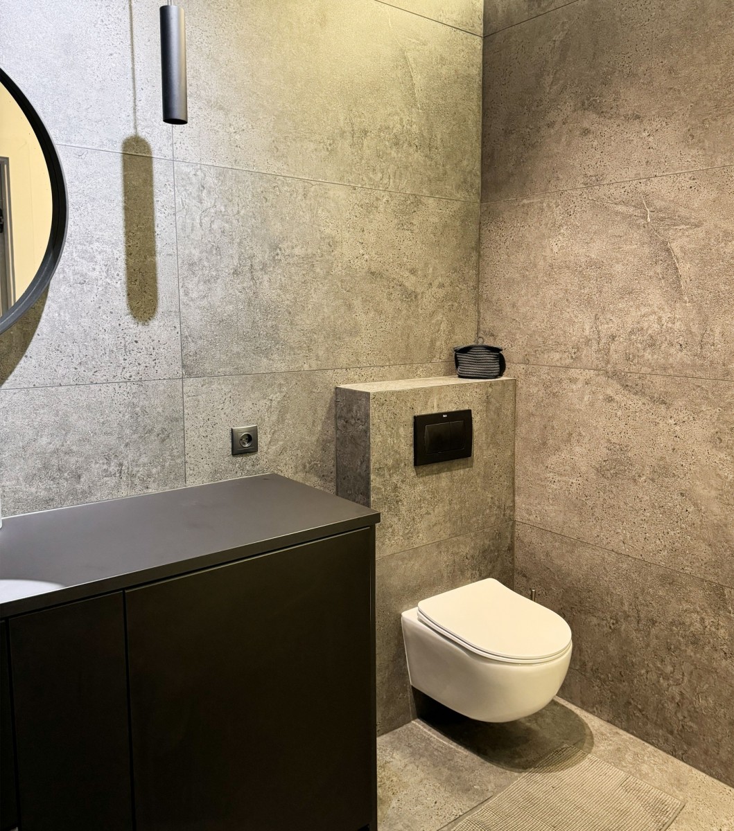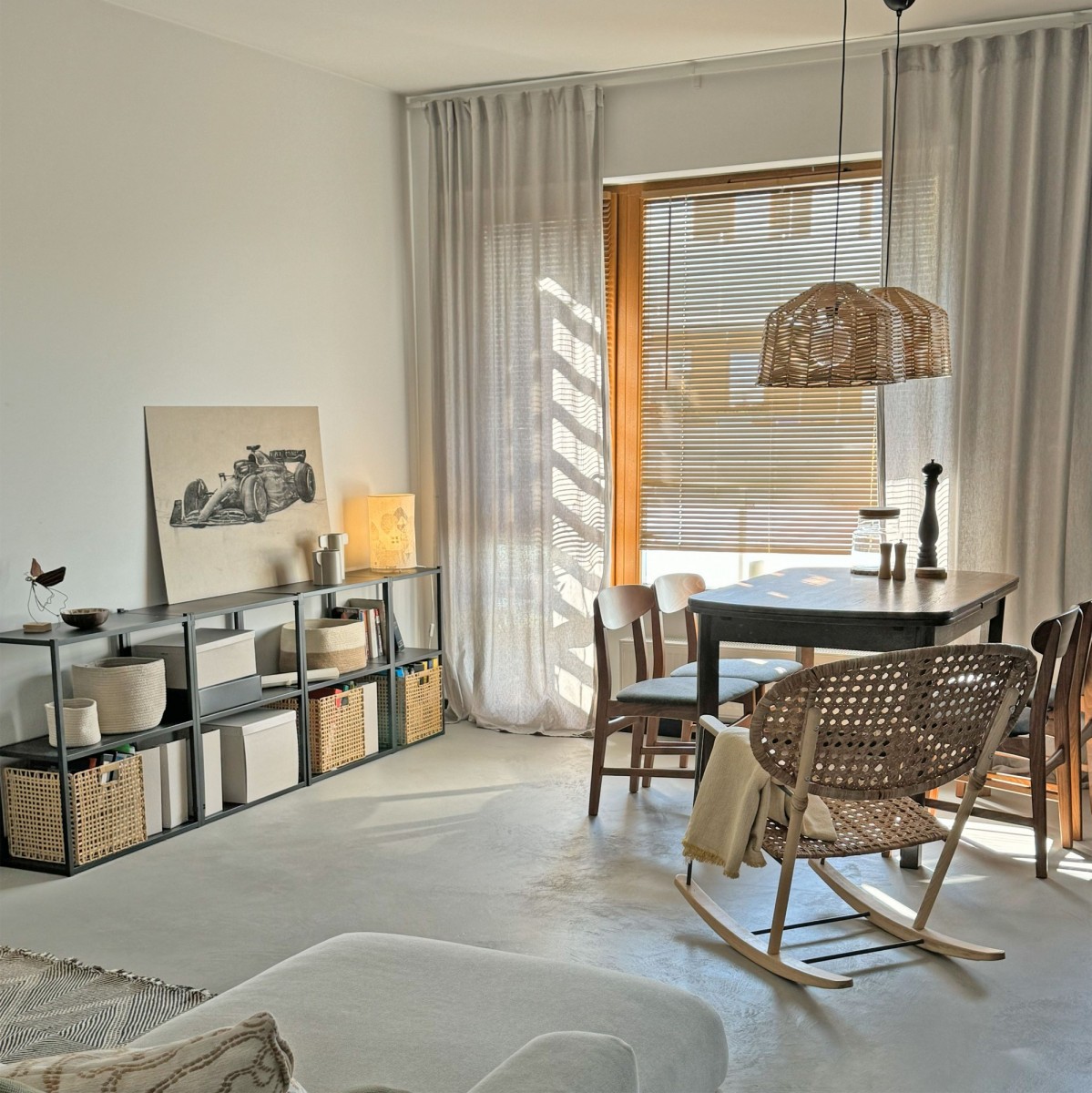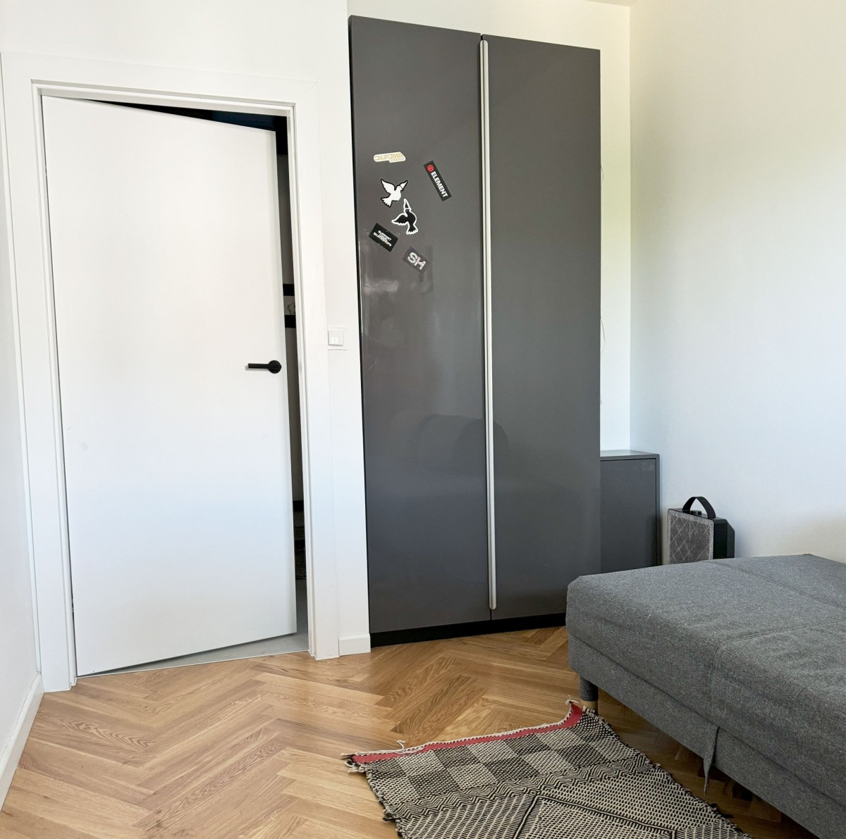 Na podłodze w sypialniach znajduje się ponadczasowy parkiet dębowy. Na podłodze w pozostałej części mieszkania mamy doskonałej jakości mikrocement, który zapewnia wysoki komfort użytkowania oraz dodaje nowoczesnego, minimalistycznego wyglądu wnętrzu.