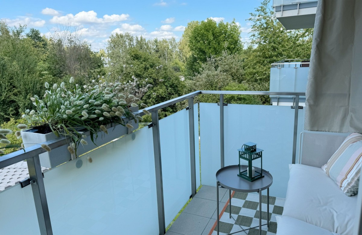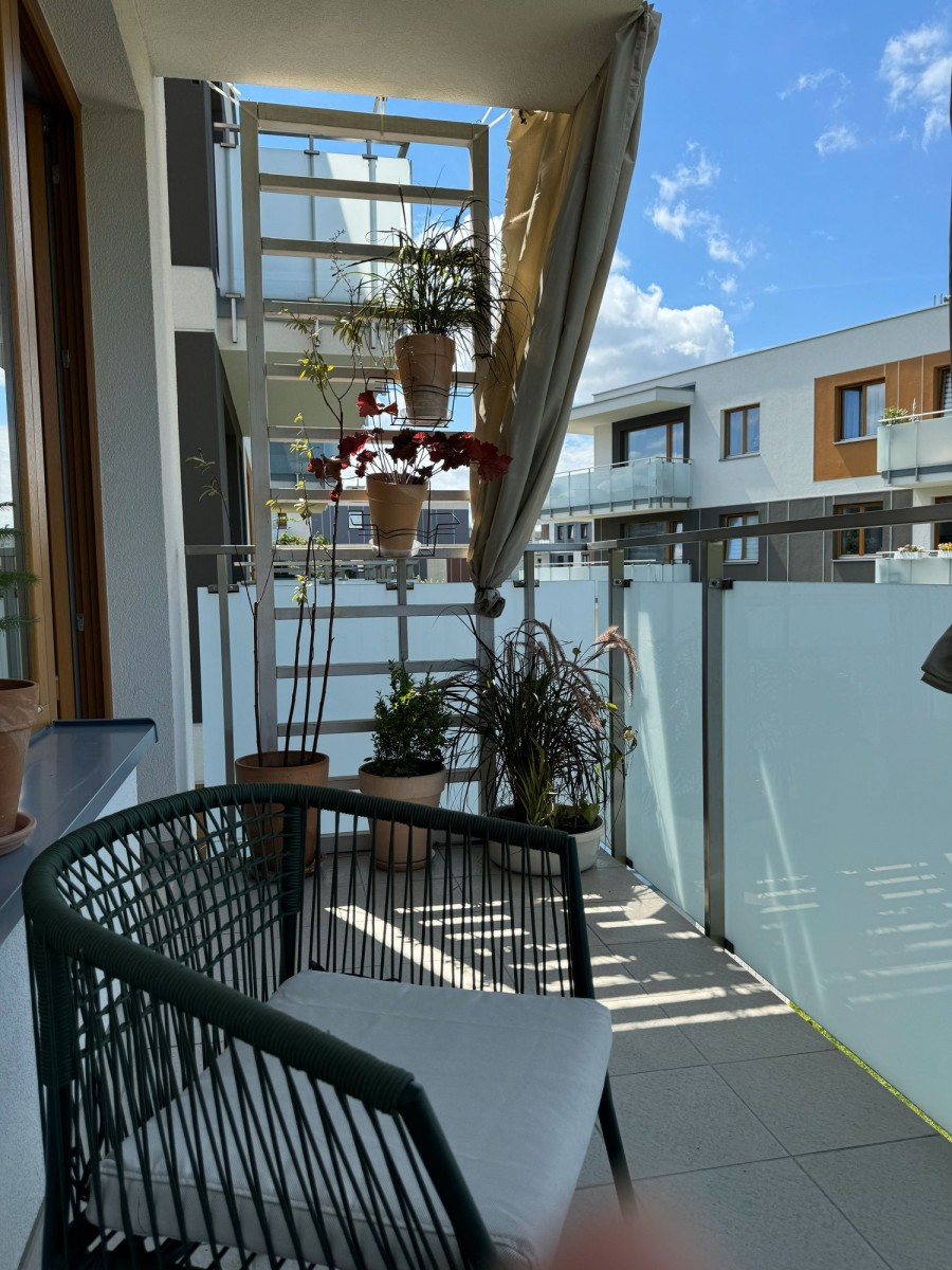 Dobrze rozplanowane i nowocześnie zaprojektowane 3 pokoje z obszerną łazienką, kuchnią otwartą na salon i naprawdę dużym balkonem z widokiem na zieleń. Specjalnie do oferty dołączam zdjęcia balkonu robione latem.